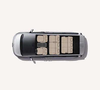 Сиденья полностью плоские, спинки 2-го, 3-го и 4-го рядов складываются в горизонтальное положение, увеличивая грузовое пространство до 2468 мм. Можно перевозить негабаритные предметы.