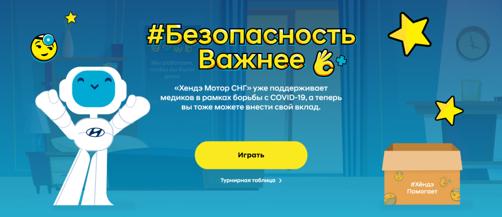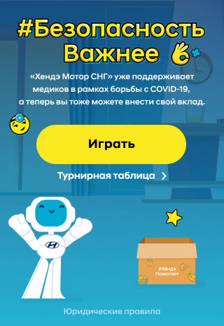 Онлайн-игра, в рамках которой пользователям совместно было необходимо набрать 1 000 000 в Мире Хёндэ, была приурочена к передаче Российскому медицинскому обществу дополнительных 1 500 промокодов на поездки в такси Ситимобил для врачей и медперсонала, задействованных в борьбе с пандемией. До этого Hyundai уже предоставила медикам 10 000 таких промокодов.